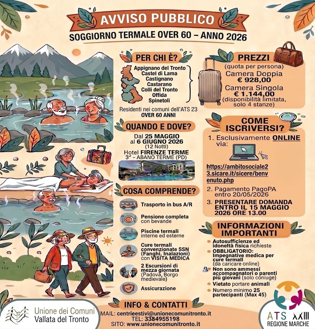 Residenti nei Comuni di: Appignano del Tronto, Castel di Lama, Castignano, Castorano, Colli del Tronto, Offida, Spinetoli.